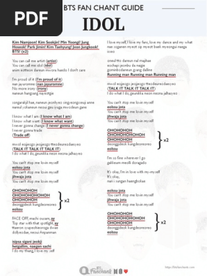 Want to learn the fanchants to btss songs. Tak jarang para fans bts yang dikenal dengan sebutan army ini meneriakkan yel yel sambil memanggil nama personil bts untuk sekedar mencuri perhatian idola pujaannya itu. Lyrics and fanchant for bts run interactive lyrics that are highlighted in time with the song the best way to learn and appreciate the lyrics and fanchants.