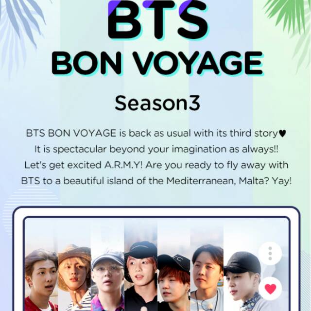 4613 eng bon voyage season 3 ep 1. No one really knows we were all very curious and sad when he left in between and people have made assumptions that it was because his mother was ill and she had to close the restaurant to move to seoul tho this all could be true ie her moving to. In bon voyage season 3 bts heads to the hot hot city of malta where the boys are again divided into friendship groups to travel around and bask in the gorgeous locales which have a lot of.