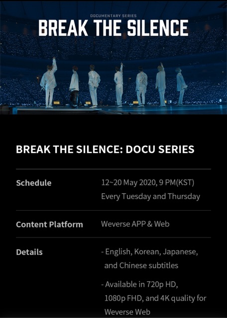 Bts are ready to take the army all around the world with their break the silence. Duoc biet bo phim du kien cong chieu vao 109 tuy nhien da bi tri hoan do tinh hinh covid 19. Bts break the silence goods poster set.