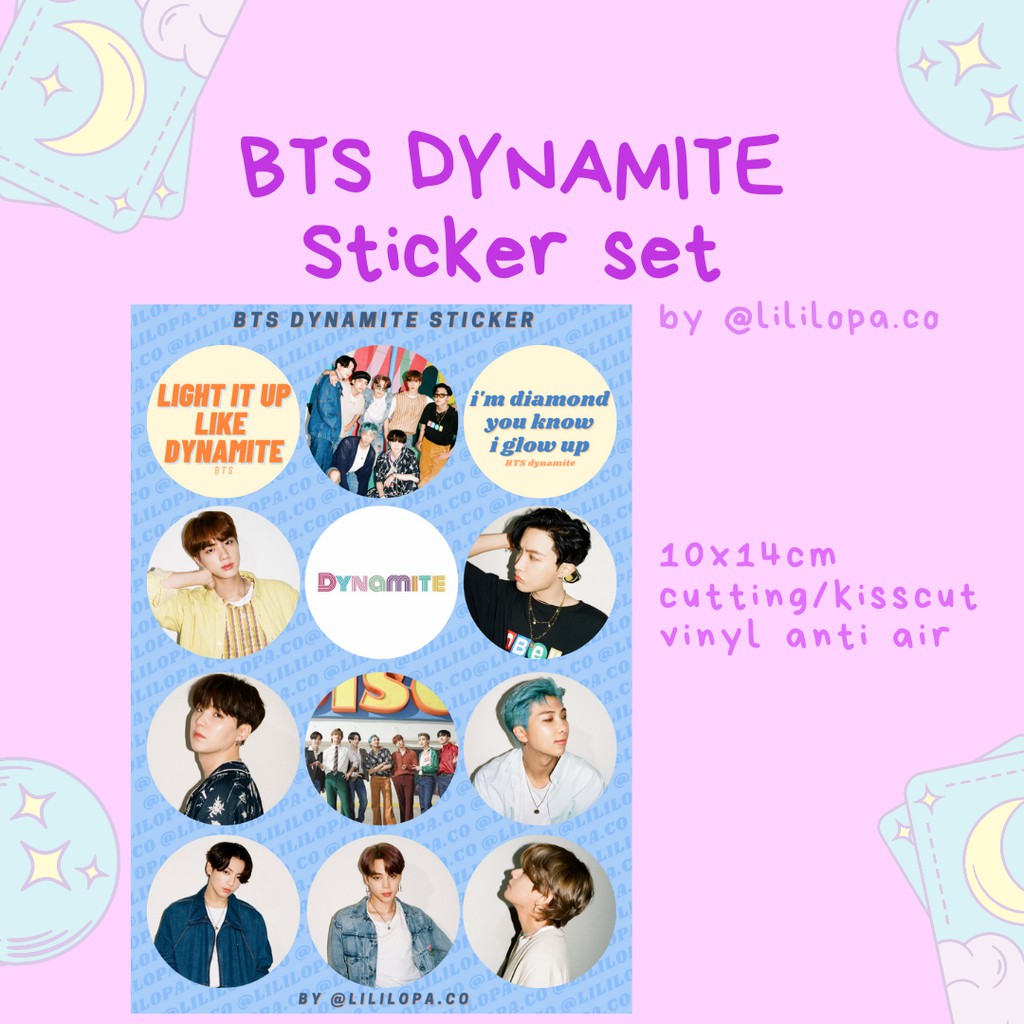 Vinyl bts dynamite stickers pack of seven jimin namjoon rm v tae suga yoongi jungkook jin hoseok jhope bts stickers dynamite purplecloudsco. 18 inch 32mm white border around each design. Jual aesthetic sticker tumblr bts dynamite kpop s dengan harga rp17000 dari toko online twisted logicid kota tangerang selatan.