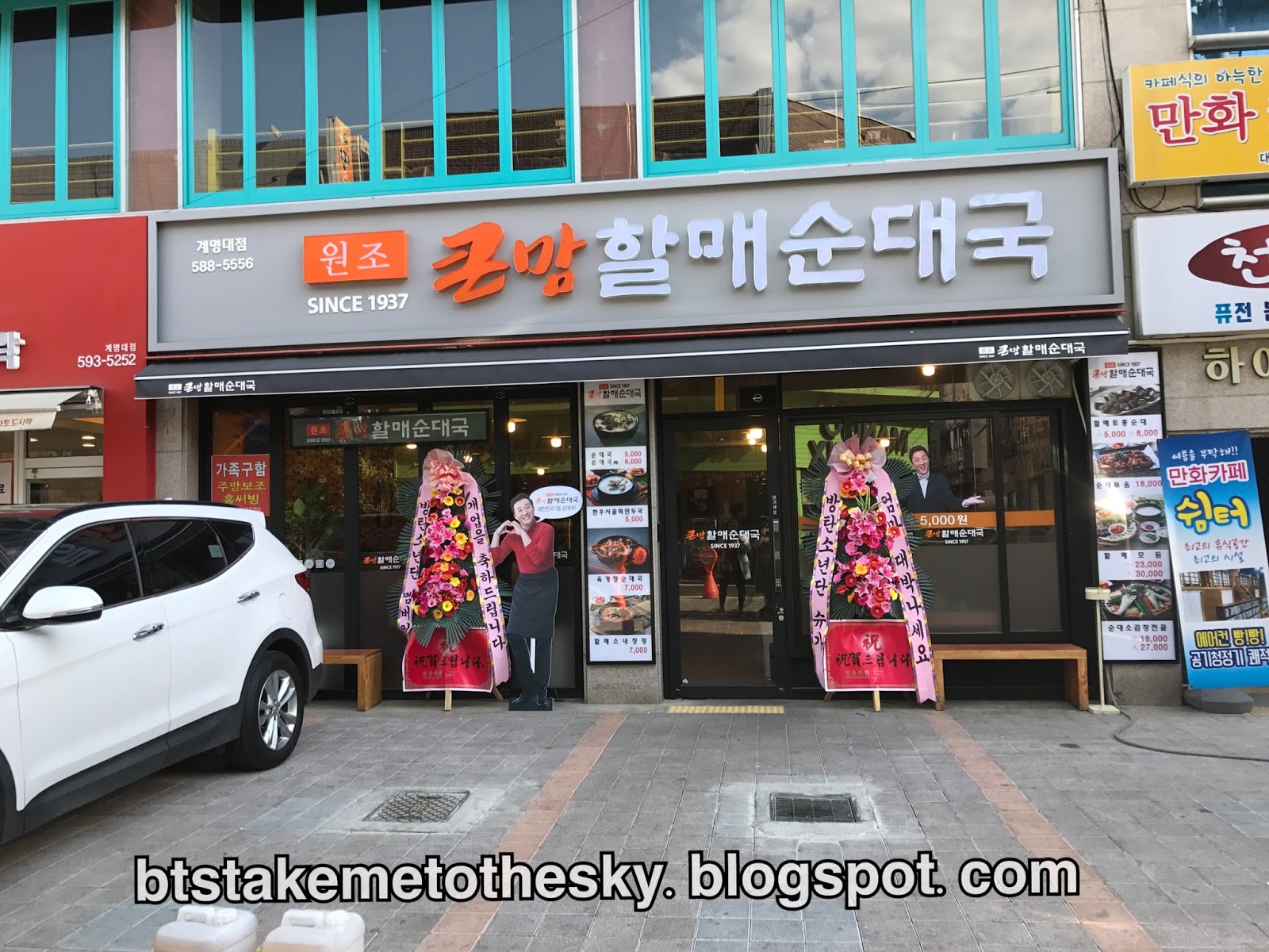 The restaurant itself is a branch of chain restaurant hence it says since 1937. Inside you will see a picture of bts posing with sugas mom and older brother. For those who dont know soondaeguk is a soup variation of sliced soondae sausages and noodles in a mild pork or even ox bone broth.